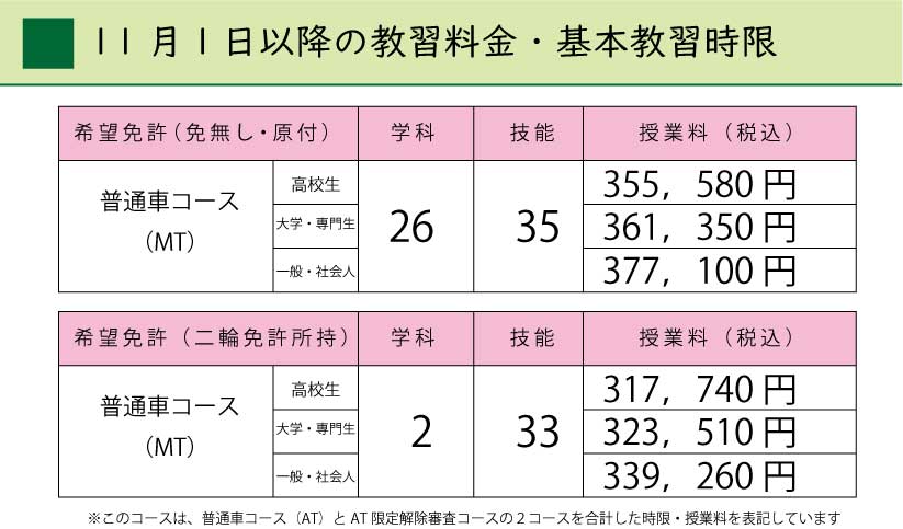 ※四輪・二輪教習コース(審査・ペーパー講習不可)に2人以上でご一緒にお手続き・ご入校される方